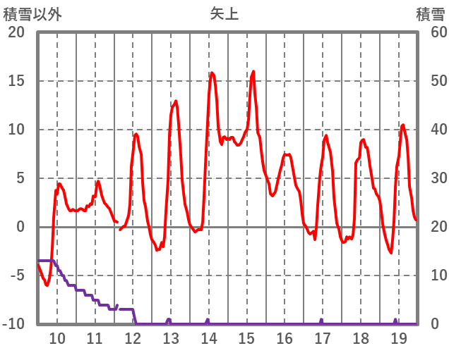 | 日 | 時 | 気温 | 降水 | 風向/風速 | 日照 | 積雪 | 降雪 |