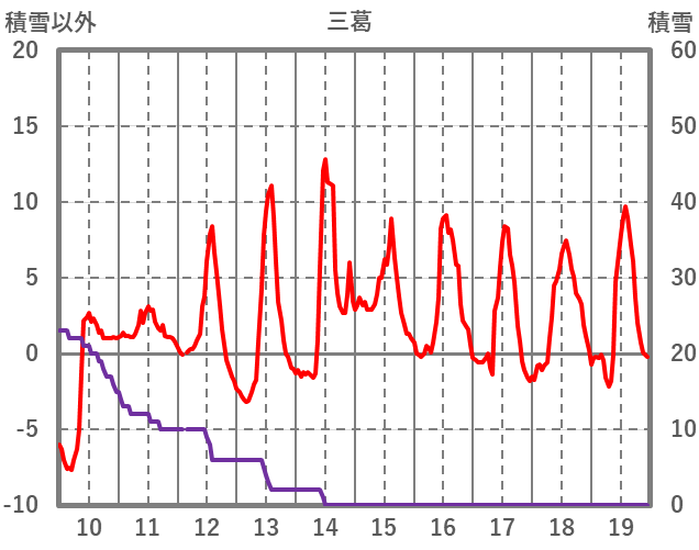 | 日 | 時 | 気温 | 降水 | 風向/風速 | 日照 | 積雪 | 降雪 |