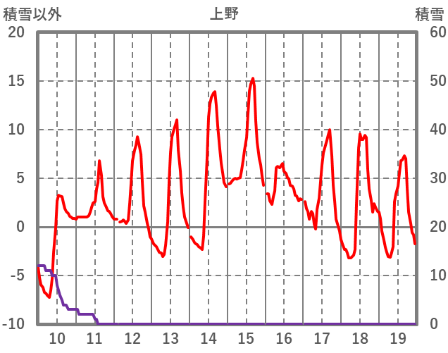 | 日 | 時 | 気温 | 降水 | 風向/風速 | 日照 | 積雪 | 降雪 |