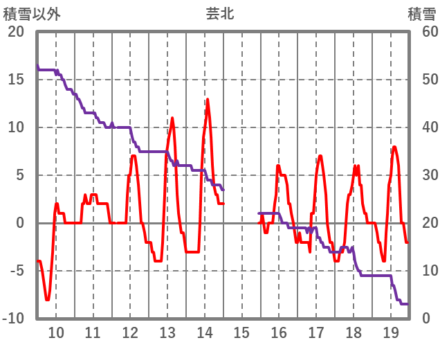 | 日 | 時 | 気温 | 降水 | 風向/風速 | 日照 | 積雪 | 降雪 |