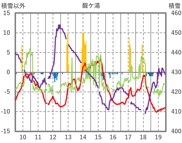 | 日 | 時 | 気温 | 降水 | 風向/風速 | 日照 | 積雪 | 降雪 |