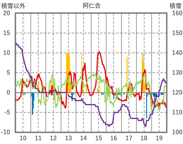 | 日 | 時 | 気温 | 降水 | 風向/風速 | 日照 | 積雪 | 降雪 |