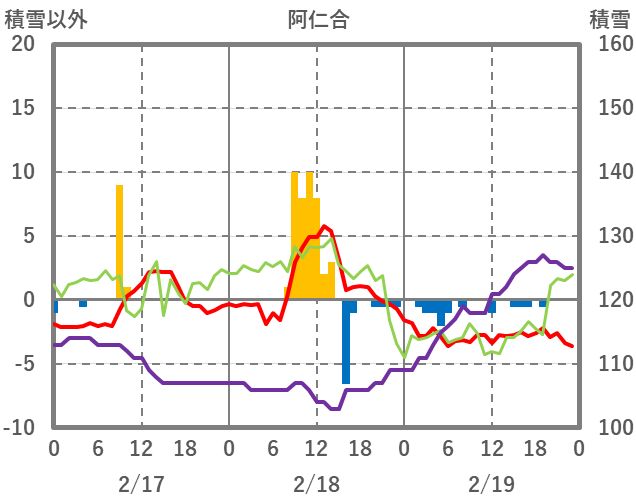 | 日 | 時 | 気温 | 降水 | 風向/風速 | 日照 | 積雪 | 降雪 |