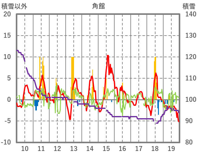 | 日 | 時 | 気温 | 降水 | 風向/風速 | 日照 | 積雪 | 降雪 |