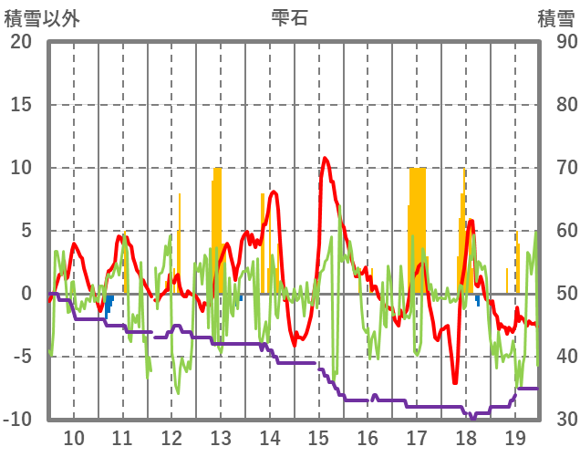 | 日 | 時 | 気温 | 降水 | 風向/風速 | 日照 | 積雪 | 降雪 |