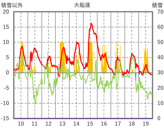 | 日 | 時 | 気温 | 降水 | 風向/風速 | 日照 | 積雪 | 降雪 |