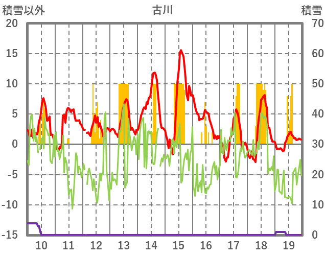 | 日 | 時 | 気温 | 降水 | 風向/風速 | 日照 | 積雪 | 降雪 |