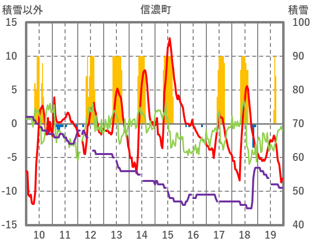 | 日 | 時 | 気温 | 降水 | 風向/風速 | 日照 | 積雪 | 降雪 |