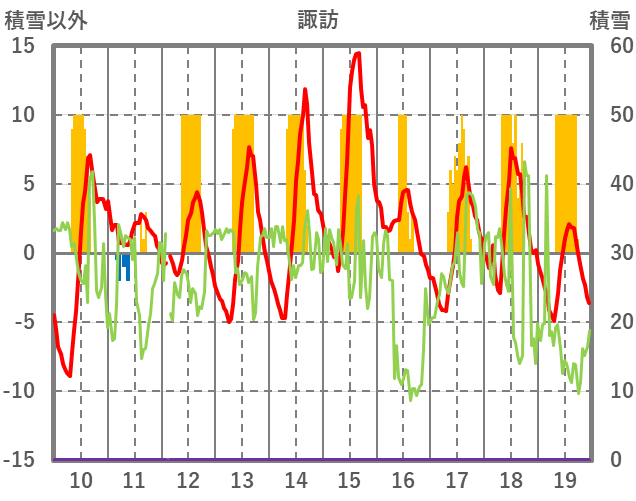 | 日 | 時 | 気温 | 降水 | 風向/風速 | 日照 | 積雪 | 降雪 |