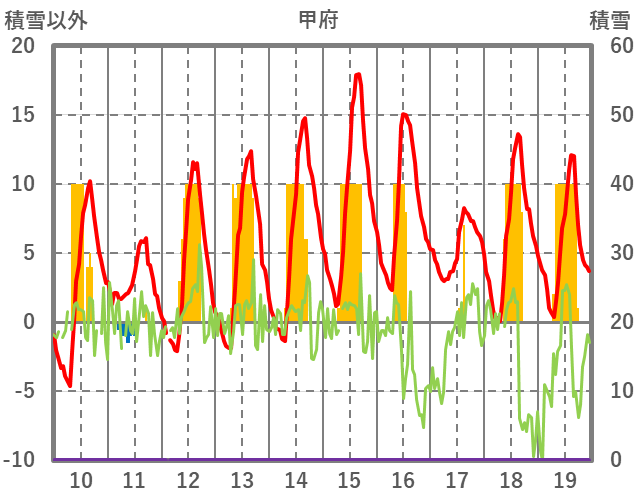 | 日 | 時 | 気温 | 降水 | 風向/風速 | 日照 | 積雪 | 降雪 |