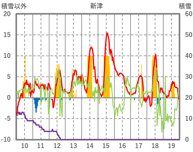 | 日 | 時 | 気温 | 降水 | 風向/風速 | 日照 | 積雪 | 降雪 |
