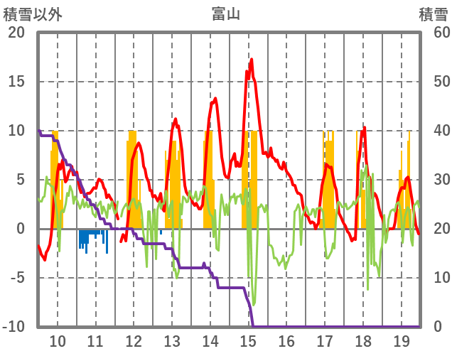 | 日 | 時 | 気温 | 降水 | 風向/風速 | 日照 | 積雪 | 降雪 |