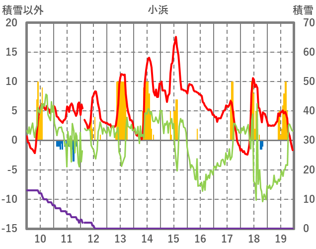 | 日 | 時 | 気温 | 降水 | 風向/風速 | 日照 | 積雪 | 降雪 |