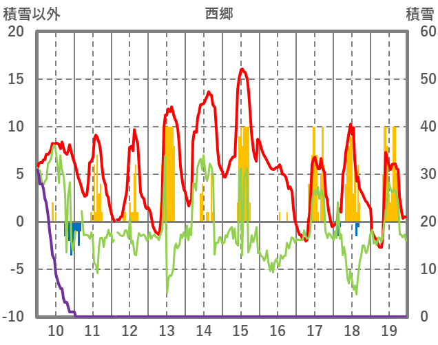 | 日 | 時 | 気温 | 降水 | 風向/風速 | 日照 | 積雪 | 降雪 |