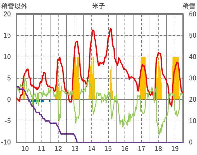 | 日 | 時 | 気温 | 降水 | 風向/風速 | 日照 | 積雪 | 降雪 |