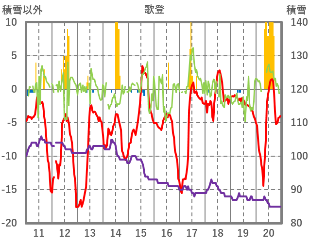 | 日 | 時 | 気温 | 降水 | 風向/風速 | 日照 | 積雪 | 降雪 |