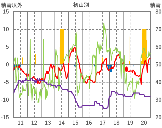 | 日 | 時 | 気温 | 降水 | 風向/風速 | 日照 | 積雪 | 降雪 |