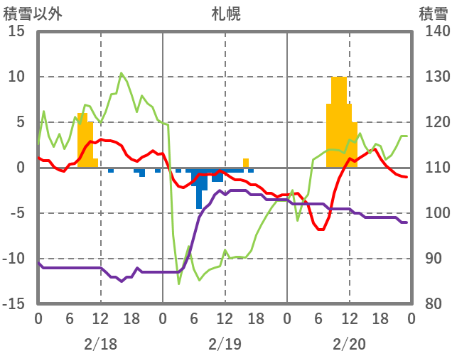 | 日 | 時 | 気温 | 降水 | 風向/風速 | 日照 | 積雪 | 降雪 |
