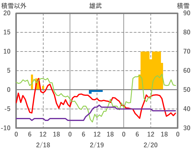 | 日 | 時 | 気温 | 降水 | 風向/風速 | 日照 | 積雪 | 降雪 |