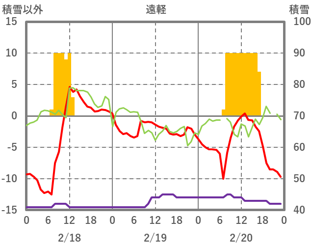 | 日 | 時 | 気温 | 降水 | 風向/風速 | 日照 | 積雪 | 降雪 |