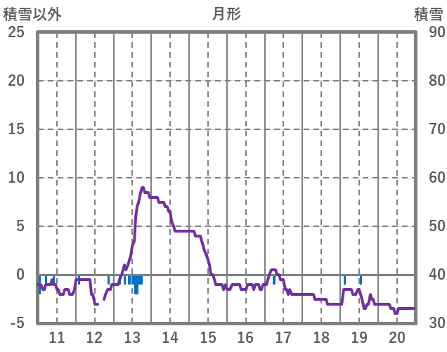 | 日 | 時 | 気温 | 降水 | 風向/風速 | 日照 | 積雪 | 降雪 |