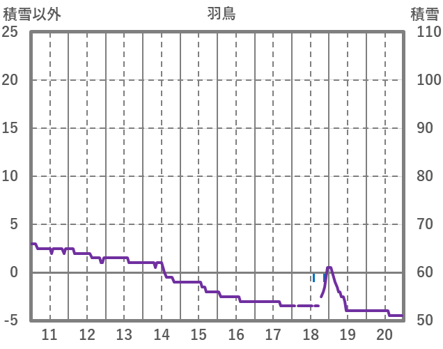 | 日 | 時 | 気温 | 降水 | 風向/風速 | 日照 | 積雪 | 降雪 |