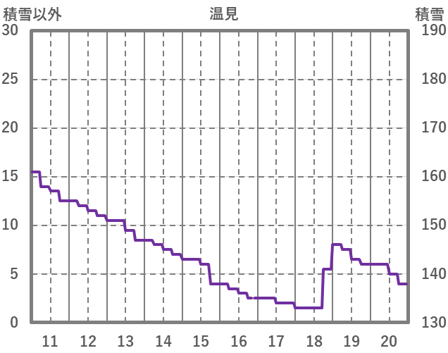 | 日 | 時 | 気温 | 降水 | 風向/風速 | 日照 | 積雪 | 降雪 |
