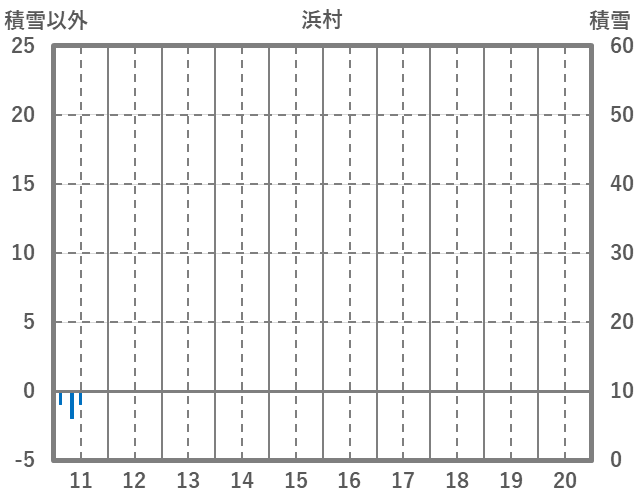| 日 | 時 | 気温 | 降水 | 風向/風速 | 日照 | 積雪 | 降雪 |