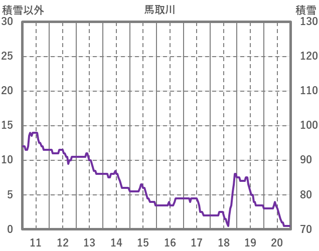 | 日 | 時 | 気温 | 降水 | 風向/風速 | 日照 | 積雪 | 降雪 |