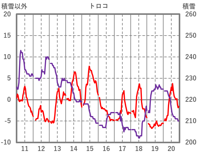 | 日 | 時 | 気温 | 降水 | 風向/風速 | 日照 | 積雪 | 降雪 |
