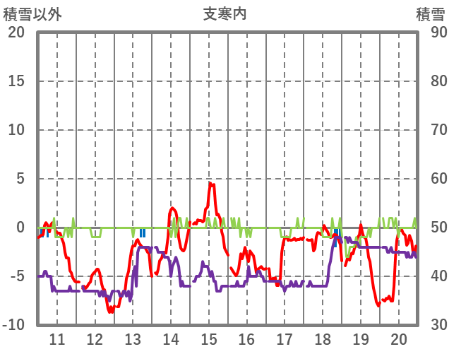 | 日 | 時 | 気温 | 降水 | 風向/風速 | 日照 | 積雪 | 降雪 |