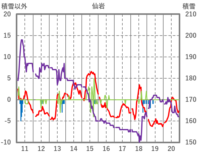 | 日 | 時 | 気温 | 降水 | 風向/風速 | 日照 | 積雪 | 降雪 |