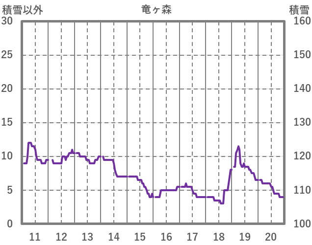 | 日 | 時 | 気温 | 降水 | 風向/風速 | 日照 | 積雪 | 降雪 |