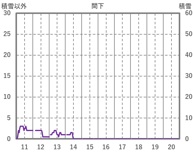 | 日 | 時 | 気温 | 降水 | 風向/風速 | 日照 | 積雪 | 降雪 |