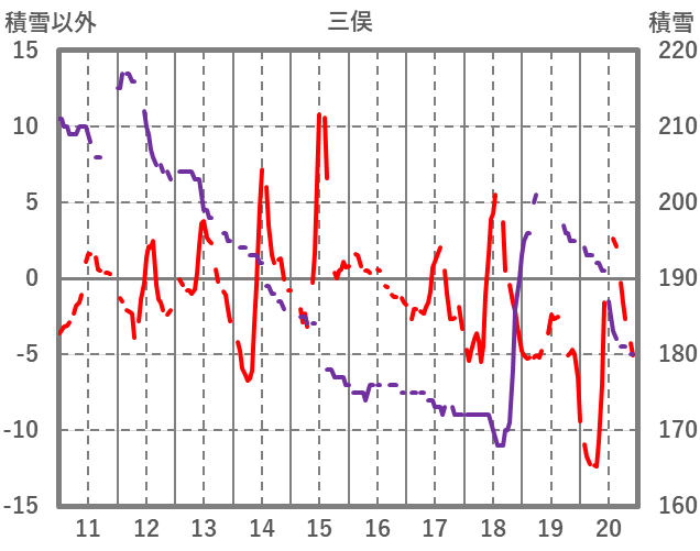 | 日 | 時 | 気温 | 降水 | 風向/風速 | 日照 | 積雪 | 降雪 |