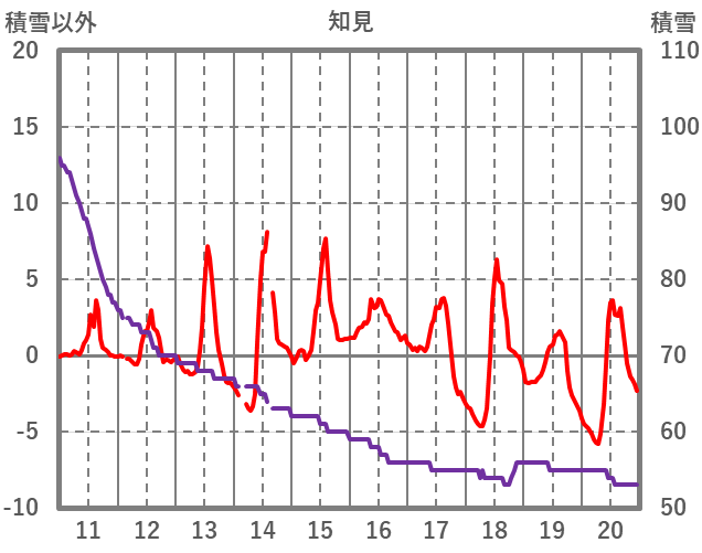 | 日 | 時 | 気温 | 降水 | 風向/風速 | 日照 | 積雪 | 降雪 |