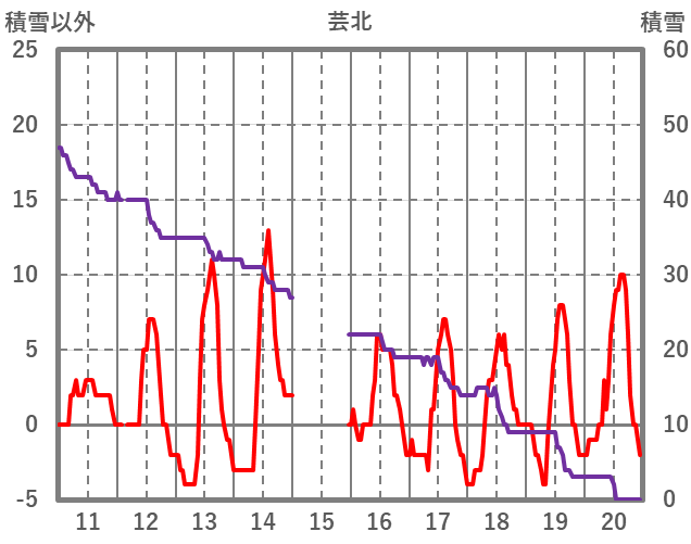 | 日 | 時 | 気温 | 降水 | 風向/風速 | 日照 | 積雪 | 降雪 |