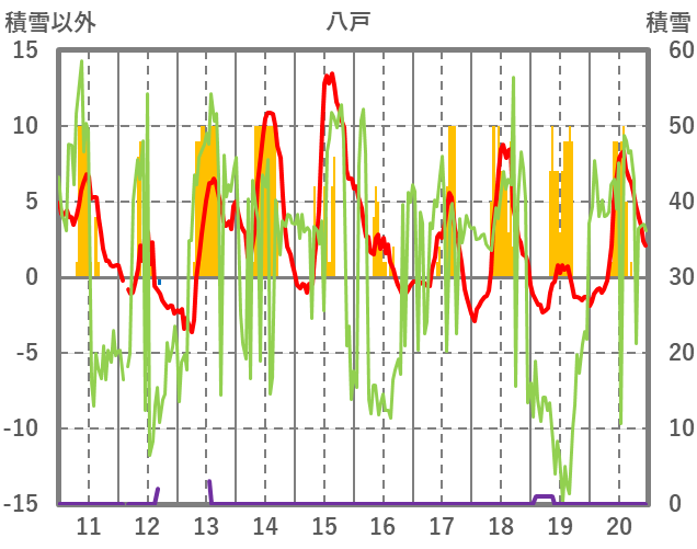 | 日 | 時 | 気温 | 降水 | 風向/風速 | 日照 | 積雪 | 降雪 |