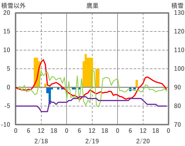 | 日 | 時 | 気温 | 降水 | 風向/風速 | 日照 | 積雪 | 降雪 |