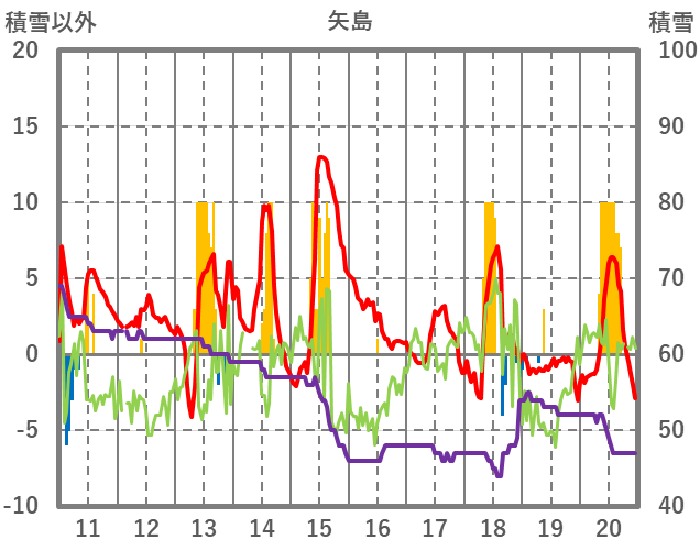 | 日 | 時 | 気温 | 降水 | 風向/風速 | 日照 | 積雪 | 降雪 |