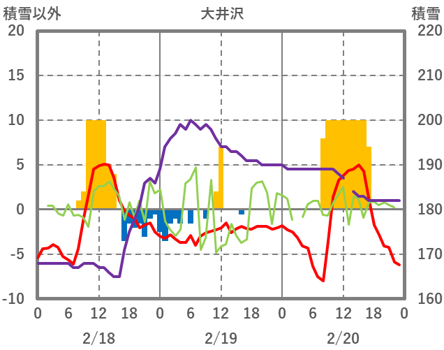 | 日 | 時 | 気温 | 降水 | 風向/風速 | 日照 | 積雪 | 降雪 |