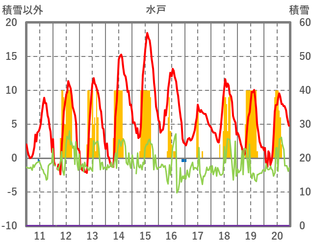 | 日 | 時 | 気温 | 降水 | 風向/風速 | 日照 | 積雪 | 降雪 |