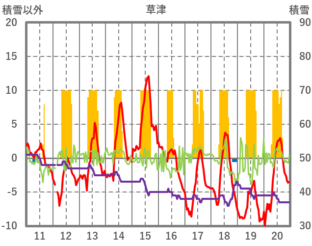 | 日 | 時 | 気温 | 降水 | 風向/風速 | 日照 | 積雪 | 降雪 |