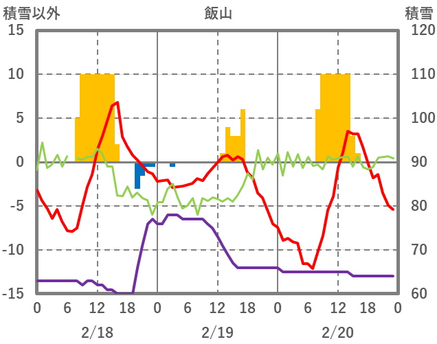 | 日 | 時 | 気温 | 降水 | 風向/風速 | 日照 | 積雪 | 降雪 |