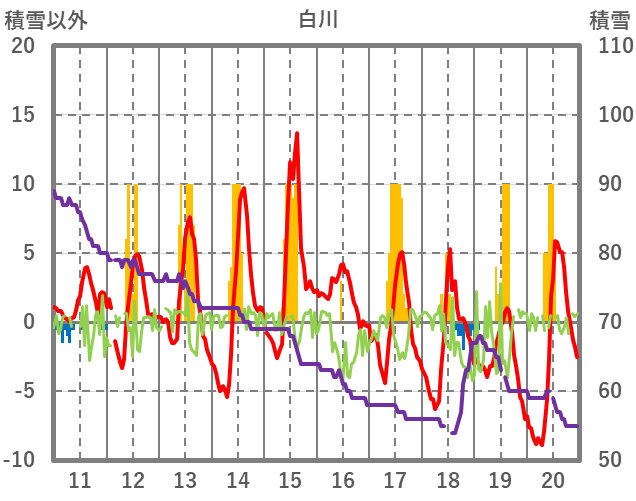 | 日 | 時 | 気温 | 降水 | 風向/風速 | 日照 | 積雪 | 降雪 |