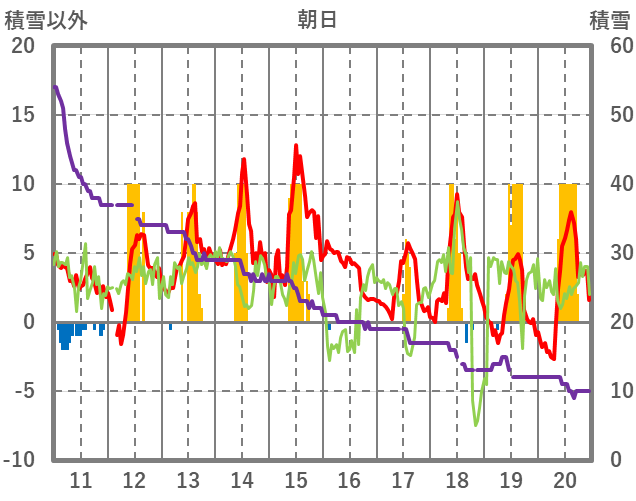 | 日 | 時 | 気温 | 降水 | 風向/風速 | 日照 | 積雪 | 降雪 |