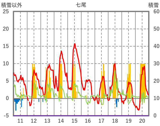| 日 | 時 | 気温 | 降水 | 風向/風速 | 日照 | 積雪 | 降雪 |