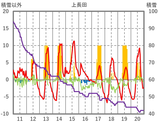 | 日 | 時 | 気温 | 降水 | 風向/風速 | 日照 | 積雪 | 降雪 |