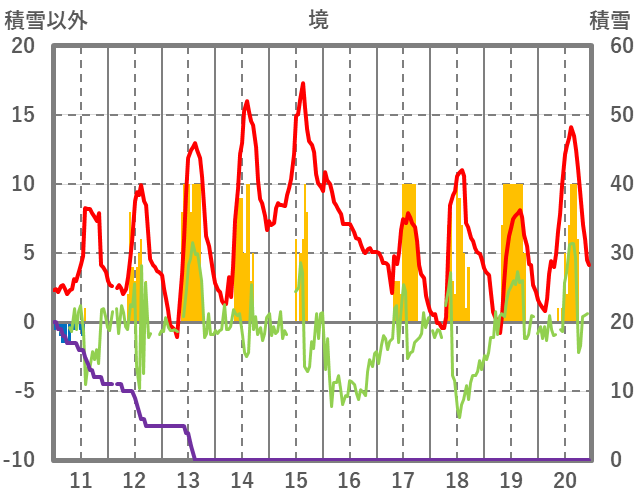 | 日 | 時 | 気温 | 降水 | 風向/風速 | 日照 | 積雪 | 降雪 |