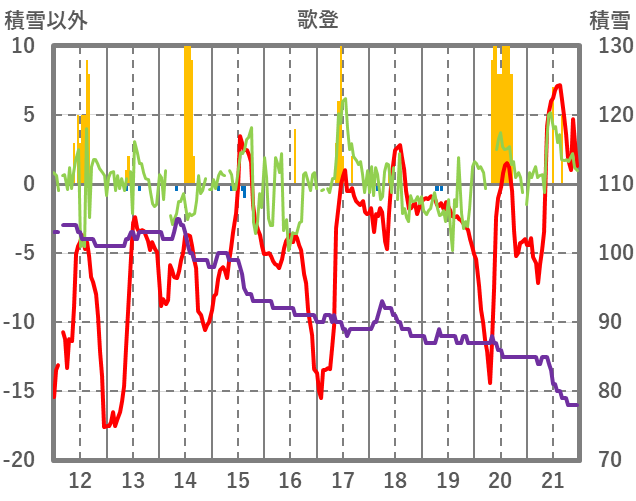 | 日 | 時 | 気温 | 降水 | 風向/風速 | 日照 | 積雪 | 降雪 |